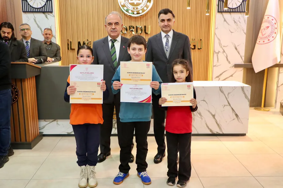 Vali Muammer Erol, ilkokullar ve ortaokullar arasında düzenlenen “Okumanın Gücü” temalı afiş tasarım yarışmasının ortaokullar il finali dereceye giren Fatsa Hasan Yahşi Ortaokulu öğrencisi Damlanur Talay, Altınordu Kayabaşı Ortaokulu öğrencisi Hazal Asya Aşa, Perşembe İmam Hatip Lisesi Ortaokulu öğrencisi Burak Acerce, ilkokullar il finalinde ise dereceye giren Kumru Mehmet Akif Ersoy İlkokulu öğrencisi Başak Ebrar Polat, Fatsa Şehit Kerem Çalışkancı İlkokulu öğrencisi Zümra Yanık, Ünye Anafartalar İlkokulu öğrencisi Hira Su Ecioğlu’na ödüllerini ve katılım belgelerini verdi.